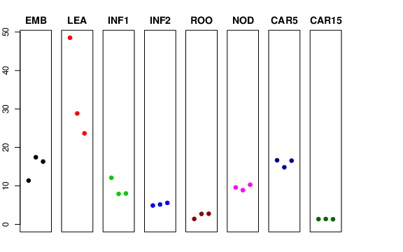| ROO | Roots from the seedlings (10 cm shoot stage) | 1.41716 | 2.7179 | 2.76026 | 3.24642 |