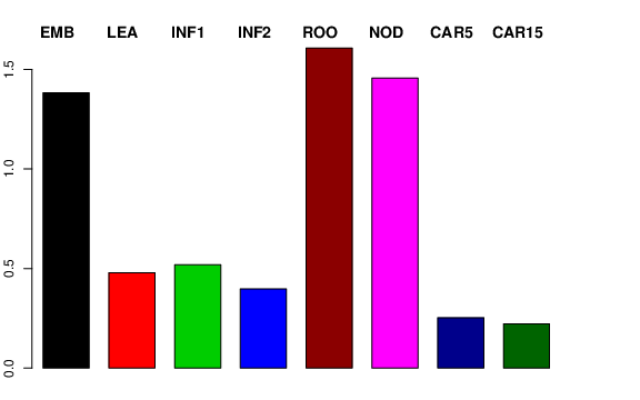 | ROO | Roots from the seedlings (10 cm shoot stage) | 1.97287 | 1.03969 | 2.29987 | 1.60808 |