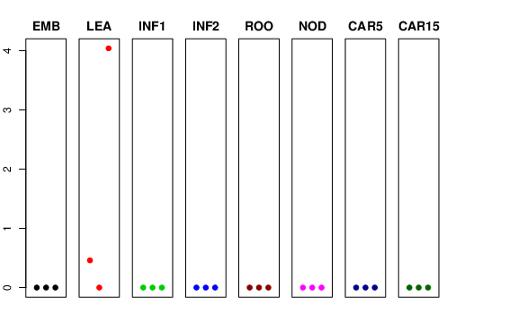 | ROO | Roots from the seedlings (10 cm shoot stage) | 0 | 0 | 0 | 0 |