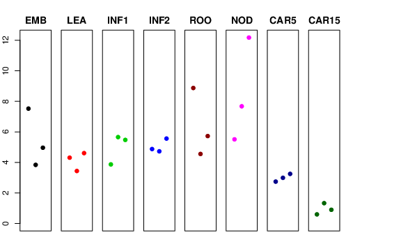 | ROO | Roots from the seedlings (10 cm shoot stage) | 8.87335 | 4.55304 | 5.7249 | 6.66882 |