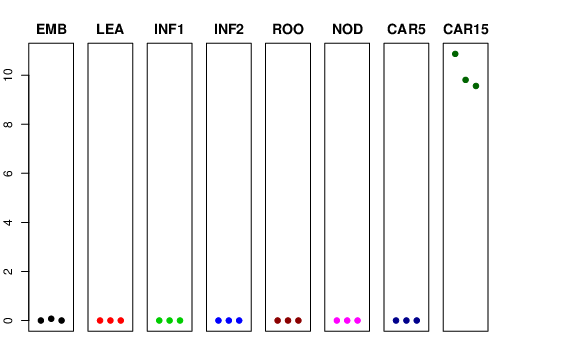 | ROO | Roots from the seedlings (10 cm shoot stage) | 0 | 0 | 0 | 0 |