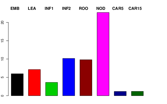 | NOD | Developing tillers at six leaf stage, 3rd internode | 18.2351 | 6.95594 | 15.9545 | 22.7056 |