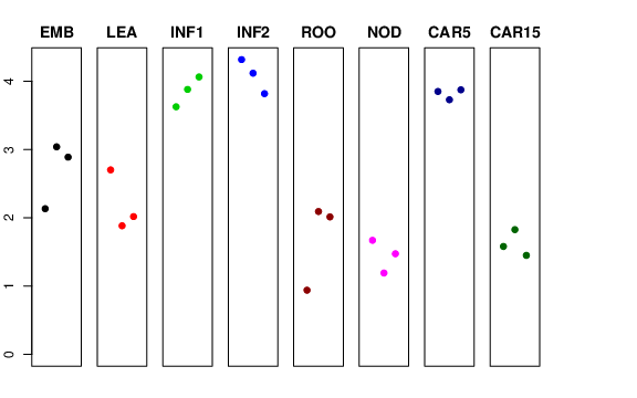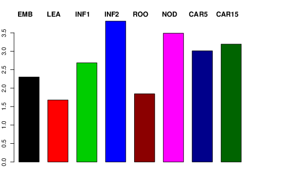 | ROO | Roots from the seedlings (10 cm shoot stage) | 0.939209 | 2.09141 | 2.01258 | 1.84566 |