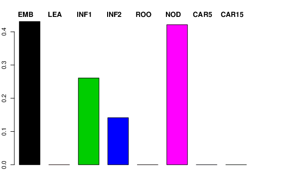 | ROO | Roots from the seedlings (10 cm shoot stage) | 0 | 0 | 0 | 0 |