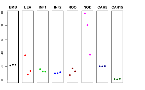 | ROO | Roots from the seedlings (10 cm shoot stage) | 7.43682 | 17.1167 | 12.9219 | 20.1394 |