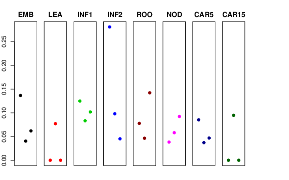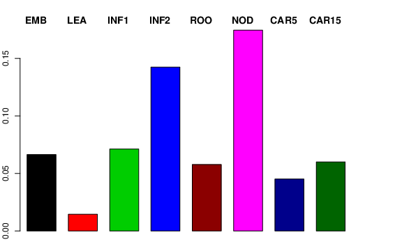 | INF2 | Developing inflorescences (1-1.5 cm) | 0.281105 | 0.0980733 | 0.0452605 | 0.142337 |