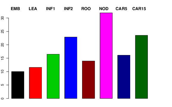 | NOD | Developing tillers at six leaf stage, 3rd internode | 7.07214 | 8.43295 | 7.6354 | 31.9179 |