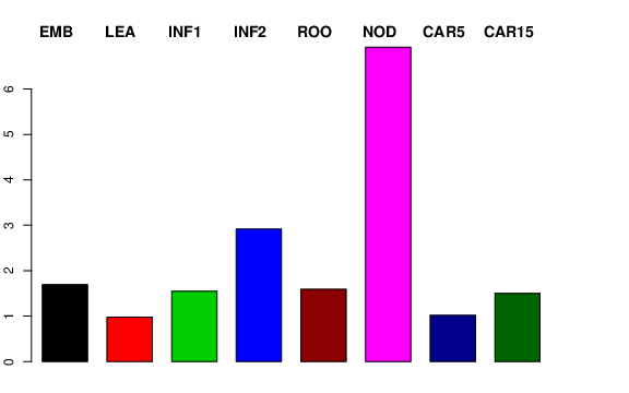 | ROO | Roots from the seedlings (10 cm shoot stage) | 1.79135 | 0.972366 | 2.97675 | 1.59108 |