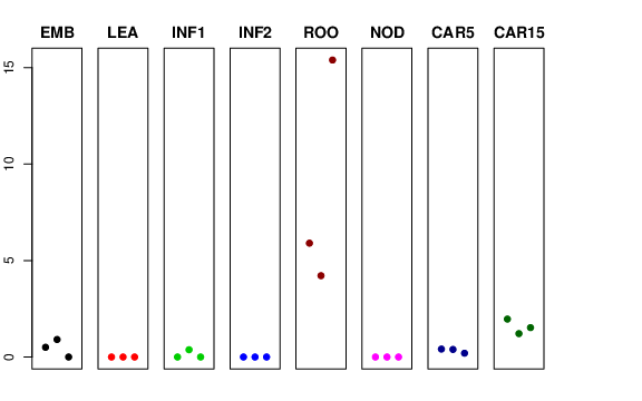 | ROO | Roots from the seedlings (10 cm shoot stage) | 5.90219 | 4.21458 | 15.3963 | 7.15651 |