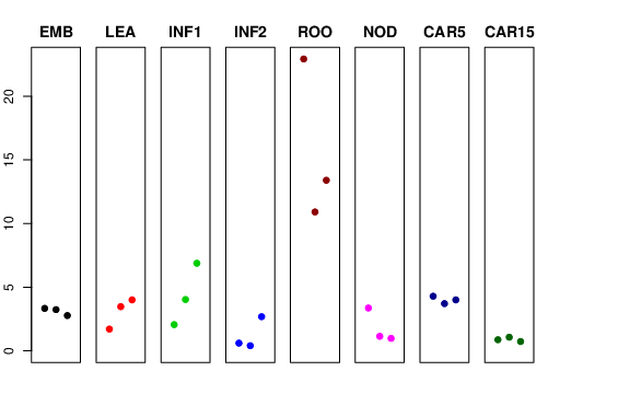 | NOD | Developing tillers at six leaf stage, 3rd internode | 3.36036 | 1.13741 | 0.976316 | 2.38461 |