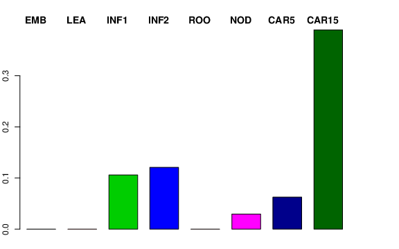 | ROO | Roots from the seedlings (10 cm shoot stage) | 0 | 0 | 0 | 0 |
