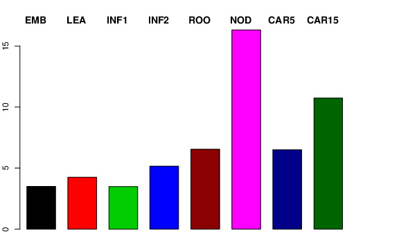 | NOD | Developing tillers at six leaf stage, 3rd internode | 3.77533 | 4.78472 | 7.00667 | 16.3301 |