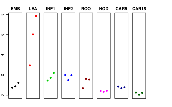 | ROO | Roots from the seedlings (10 cm shoot stage) | 0.691702 | 1.62659 | 1.5568 | 1.63243 |