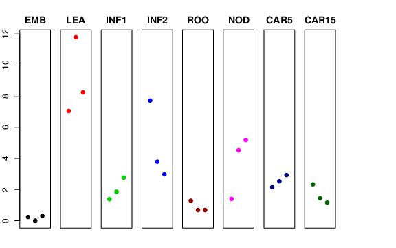 | ROO | Roots from the seedlings (10 cm shoot stage) | 1.28342 | 0.681683 | 0.684968 | 1.0371 |