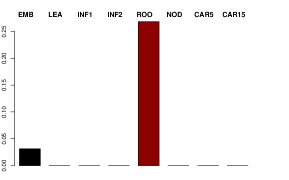| ROO | Roots from the seedlings (10 cm shoot stage) | 0.562178 | 0.201483 | 0.287023 | 0.268284 |