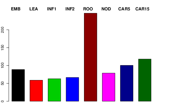 | ROO | Roots from the seedlings (10 cm shoot stage) | 276.186 | 188.258 | 204.542 | 246.566 |