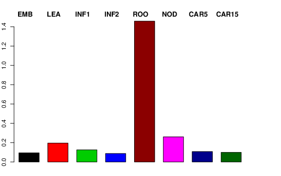 | ROO | Roots from the seedlings (10 cm shoot stage) | 0.660064 | 1.22854 | 0.99637 | 1.45818 |