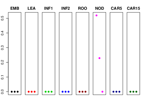 | ROO | Roots from the seedlings (10 cm shoot stage) | 0 | 0 | 0 | 0 |