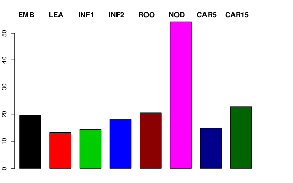 | ROO | Roots from the seedlings (10 cm shoot stage) | 18.8095 | 17.3864 | 22.2055 | 20.4906 |