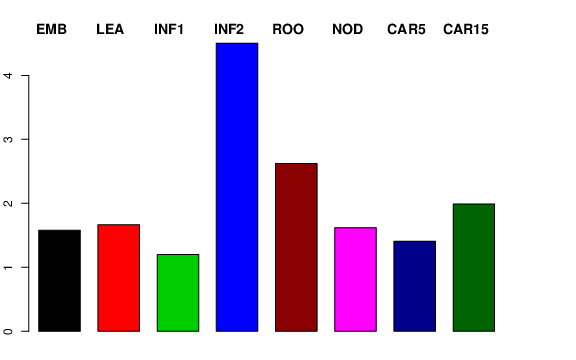 | ROO | Roots from the seedlings (10 cm shoot stage) | 0.821319 | 3.43655 | 1.32228 | 2.62122 |