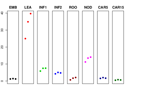 | ROO | Roots from the seedlings (10 cm shoot stage) | 0.683374 | 1.66932 | 2.0691 | 1.28443 |