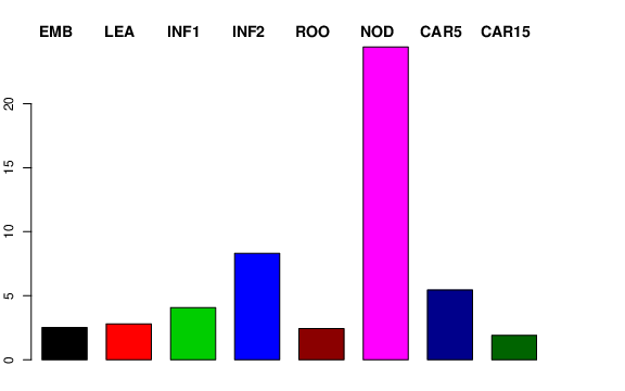 | ROO | Roots from the seedlings (10 cm shoot stage) | 1.43281 | 1.82447 | 1.41586 | 2.42417 |