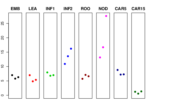 | ROO | Roots from the seedlings (10 cm shoot stage) | 5.73035 | 7.08741 | 6.60438 | 6.88302 |