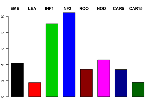| ROO | Roots from the seedlings (10 cm shoot stage) | 0.771118 | 2.68447 | 3.46112 | 3.39919 |