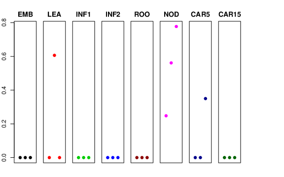 | ROO | Roots from the seedlings (10 cm shoot stage) | 0 | 0 | 0 | 0 |