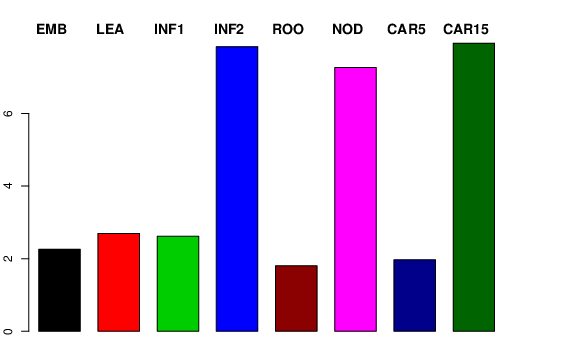 | ROO | Roots from the seedlings (10 cm shoot stage) | 0.759836 | 1.89843 | 2.14651 | 1.80226 |