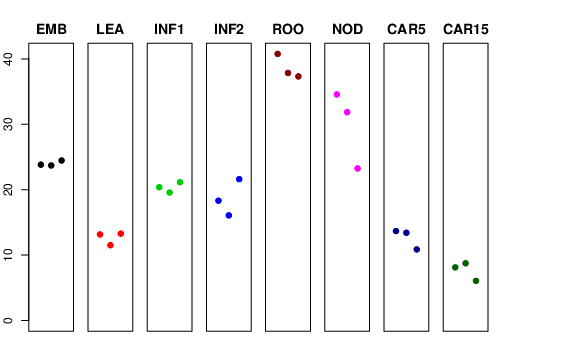 | ROO | Roots from the seedlings (10 cm shoot stage) | 40.7628 | 37.8523 | 37.3192 | 45.3245 |