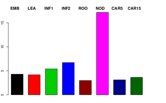 | NOD | Developing tillers at six leaf stage, 3rd internode | 2.54752 | 6.09966 | 5.79694 | 17.1991 |