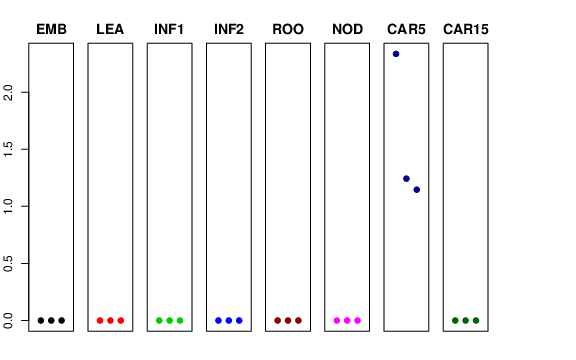 | ROO | Roots from the seedlings (10 cm shoot stage) | 0 | 0 | 0 | 0 |