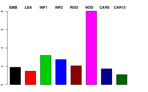 | ROO | Roots from the seedlings (10 cm shoot stage) | 0.820792 | 2.11053 | 2.90741 | 2.06569 |