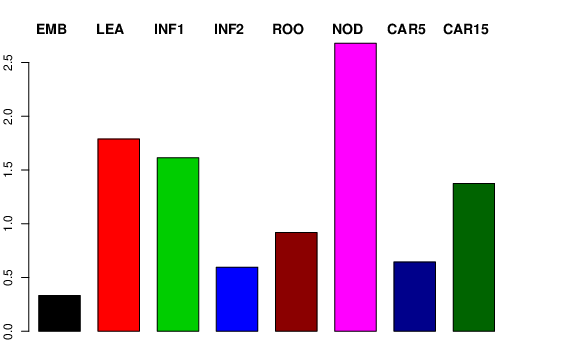 | ROO | Roots from the seedlings (10 cm shoot stage) | 0.328226 | 1.24155 | 0.57587 | 0.918645 |