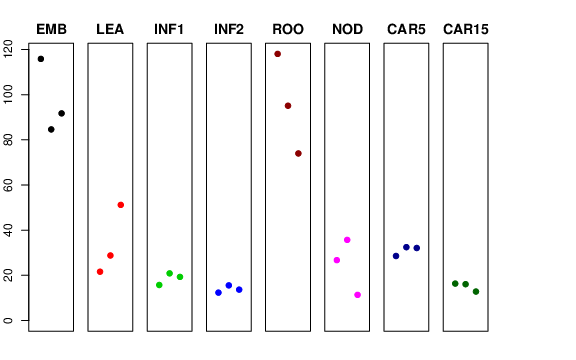 | ROO | Roots from the seedlings (10 cm shoot stage) | 118.032 | 95.084 | 73.9626 | 109.46 |