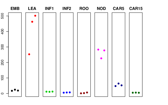 | ROO | Roots from the seedlings (10 cm shoot stage) | 0.945765 | 2.32751 | 6.35139 | 2.69041 |