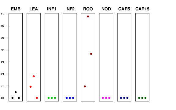 | ROO | Roots from the seedlings (10 cm shoot stage) | 0.962371 | 6.79875 | 3.68308 | 3.96386 |