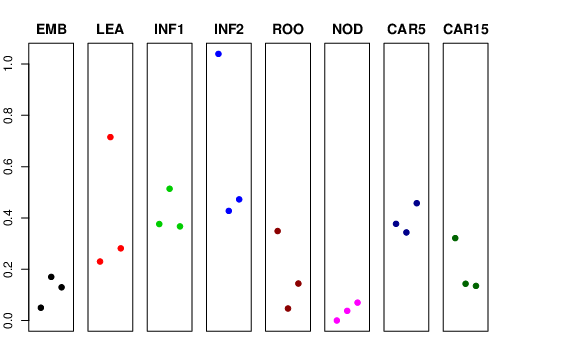| ROO | Roots from the seedlings (10 cm shoot stage) | 0.348836 | 0.04679 | 0.1441 | 0.145854 |