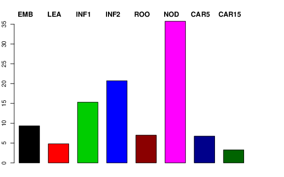 | ROO | Roots from the seedlings (10 cm shoot stage) | 2.97437 | 6.02277 | 5.93153 | 6.97907 |