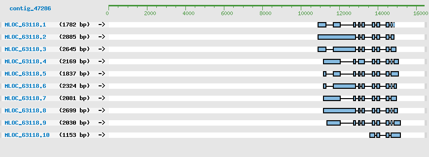 Homology of Longest Transcript to Model Species (BLASTX to E-value < 1e-50)
