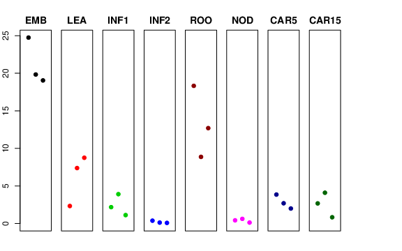 | ROO | Roots from the seedlings (10 cm shoot stage) | 18.3257 | 8.86655 | 12.6943 | 13.322 |
