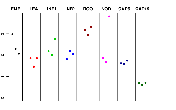 | ROO | Roots from the seedlings (10 cm shoot stage) | 3.1821 | 2.94017 | 3.32728 | 2.67563 |