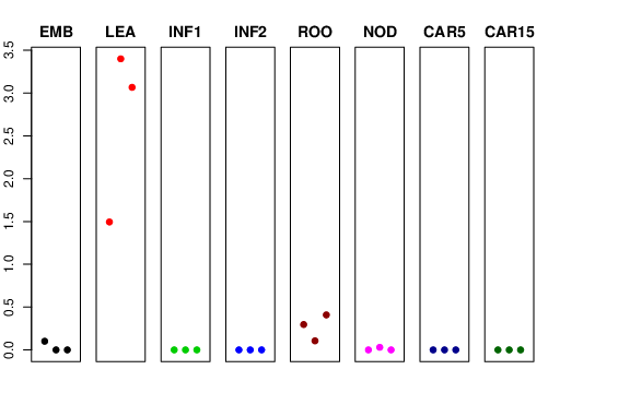 | ROO | Roots from the seedlings (10 cm shoot stage) | 0.296439 | 0.105884 | 0.4087 | 0.21536 |