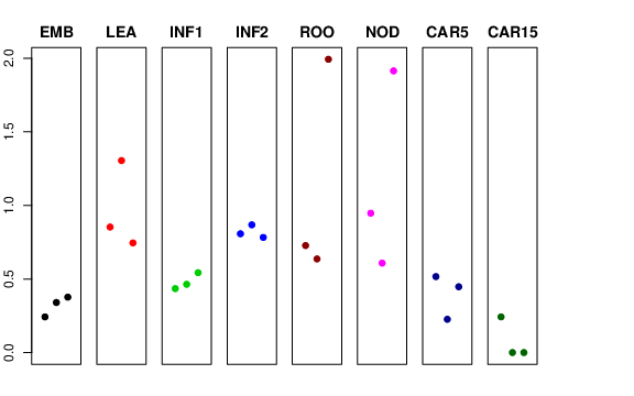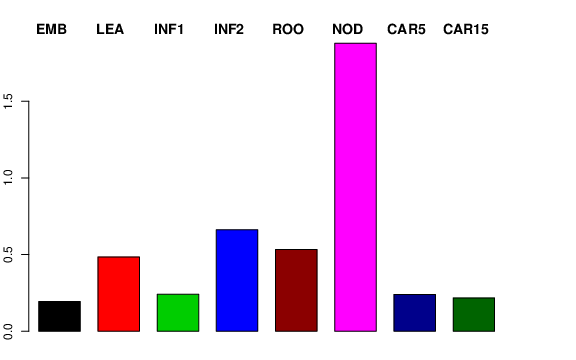 | ROO | Roots from the seedlings (10 cm shoot stage) | 0.72717 | 0.636209 | 1.99311 | 0.533313 |