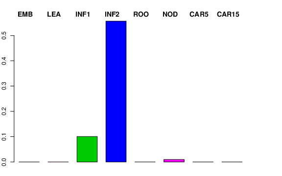 | ROO | Roots from the seedlings (10 cm shoot stage) | 0 | 0 | 0 | 0 |