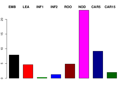| ROO | Roots from the seedlings (10 cm shoot stage) | 1.93691 | 3.16698 | 1.52445 | 4.82442 |