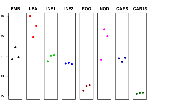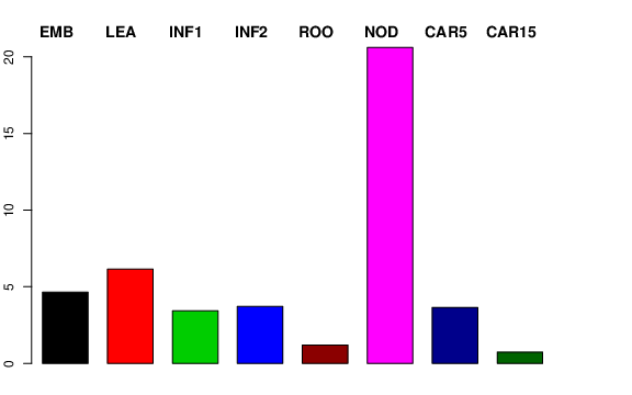 | ROO | Roots from the seedlings (10 cm shoot stage) | 0.55472 | 0.999677 | 1.10356 | 1.19765 |