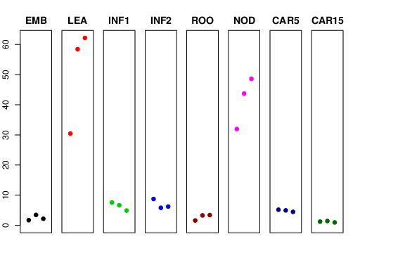 | ROO | Roots from the seedlings (10 cm shoot stage) | 1.58304 | 3.27892 | 3.37649 | 3.92279 |