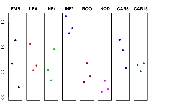 | INF1 | Young developing inflorescences (5mm) | 0.547822 | 0.331647 | 0.956533 | 0.434017 |